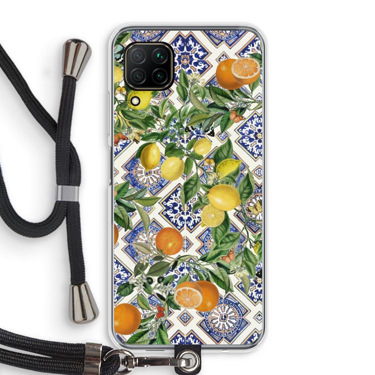 Huawei P40 Lite Handyhülle - Blaue Fliesen, Zitronen und Orangen