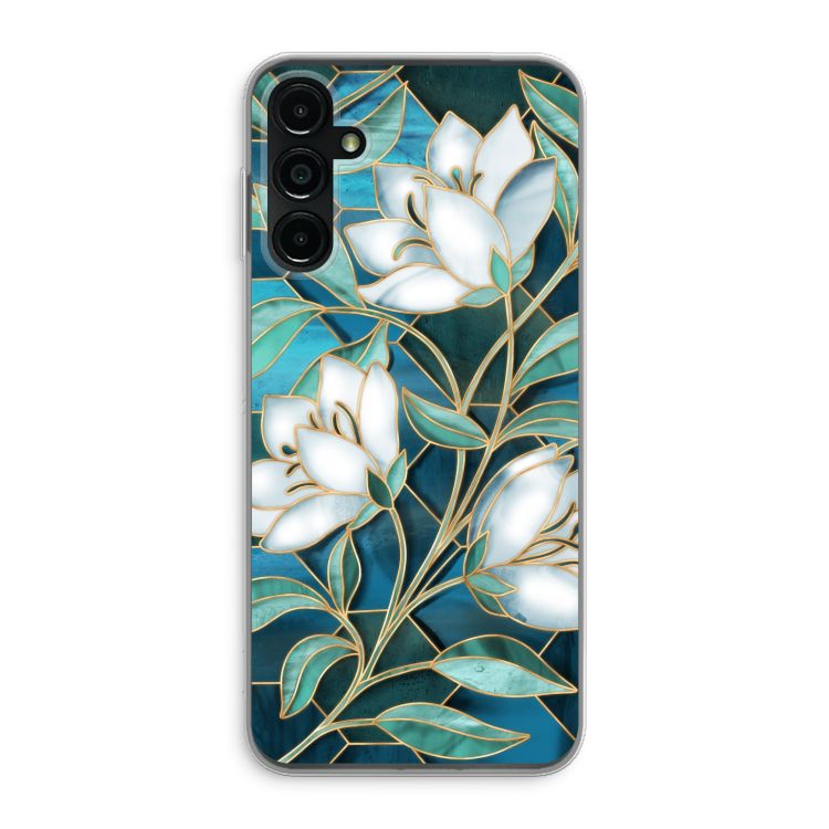 Samsung Galaxy A14 Handyhülle - Blaue Glasmalerei Blumen